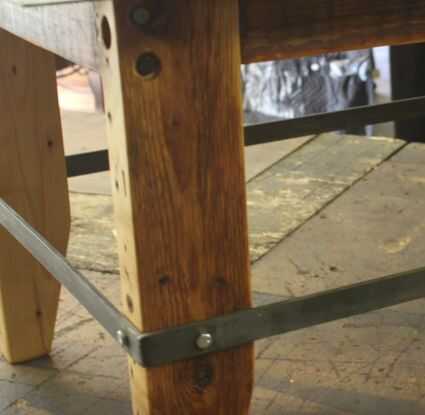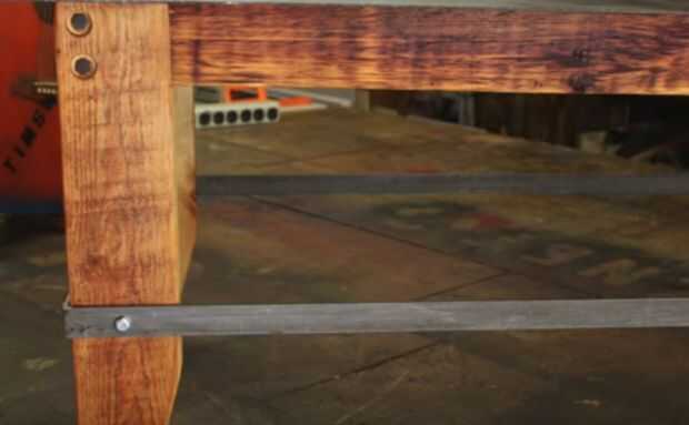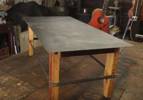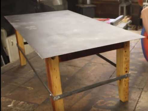 usted podría hacer esta tabla básicamente nada pero una tronzadora, taladro de mano y lijadora. la soldadura no es necesaria (perno de la parte superior y a unir las piernas sin la soldadura de las esquinas).