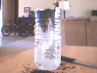 bueno no realmente, pero todo lo demás no es digno de su propio paso whatever.you a necesitar cortar aproximadamente 1/3 de la manera abajo, inserte la tela de algodón a través de la tapa, agujero, cosa dejando algunos todavía dentro de la parte del embudo. luego colocar boca abajo en la otra mitad restante. Añadir macetas y semillas y listo. Ahora sólo tienes que esperar. realmente funcionan! ver en el siguiente paso, es una foto de ella.