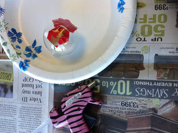 Entonces, comenzar a pegar la envoltura papel pedazos en su ornamnet.