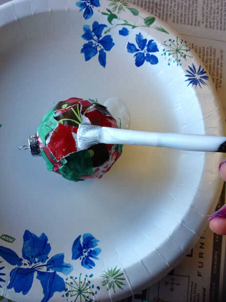 Una vez que haya rellenado todo el espacio vacío, aplicar Mod Podge sobre todo ornamento.