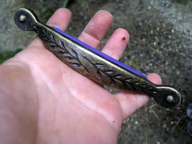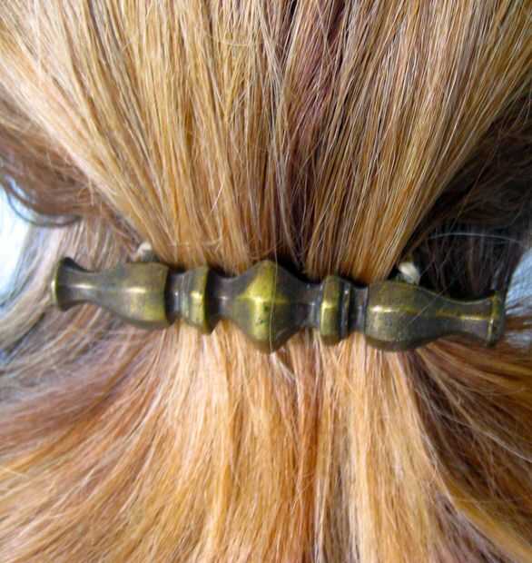 tomar un viejo tirón de gabinete cajón con un diseño retro o intrigante y reutilizar para su pelo.