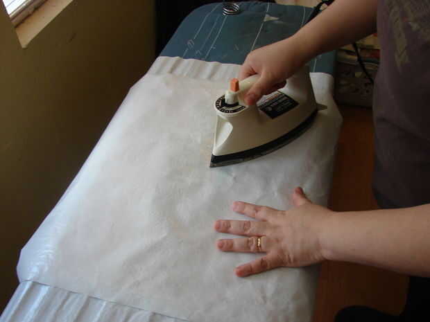 No he podido encontrar dos hojas prensado del mismo tamaño. Así que comprar uno grande y uno mediano. Coloca uno en la tabla de planchado.