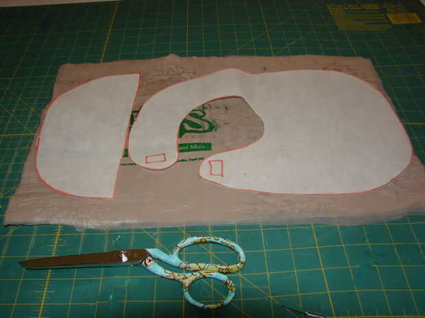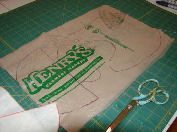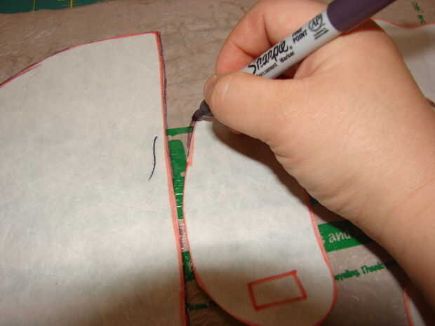 Usando su patrón de babero, traza alrededor de él sobre la tela.