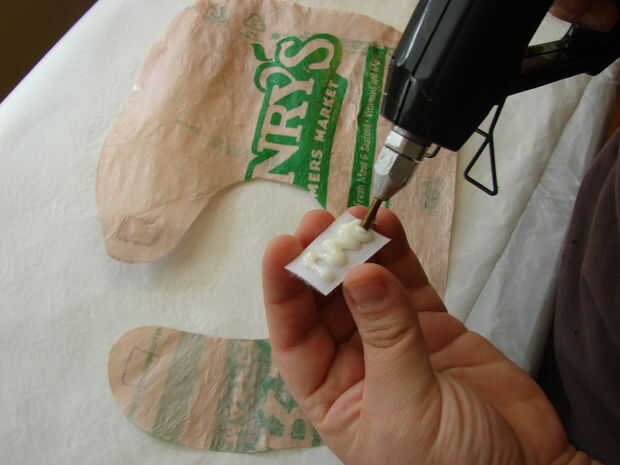 darle una segunda vida a las bolsas de plástico. Crear a futuro tela!Aquí es una demostración de la foto sobre cómo fusionar bolsas de plástico en un nuevo tejido reciclado.lista de la fuente:. por lo menos 4 bolsas de plástico. papel de calco o pape