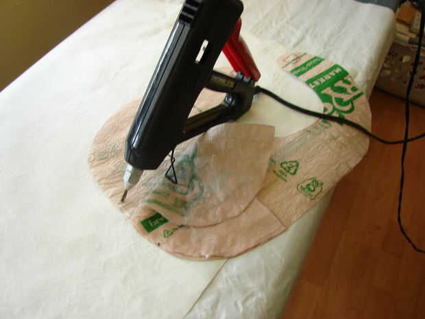 Para este paso encolar la parte inferior del babero y el velcro así que esos son los pasos que se muestran. Sin embargo el pegamento no se pegue después lo pongo en mi pequeñajo. No sé si compré el mal pegamento o lo que por lo que terminé después de tomar las fotos que solo hierro muy cuidado alrededor de los bordes y en el cierre de velcro. Aún utilizando las hojas de prensado. Así que probar ambos métodos y ver lo que funciona para usted. Encontré les planchado funcionó mejor.