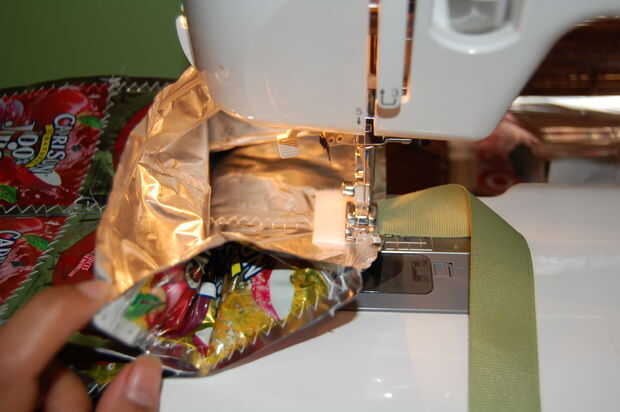 2. Inserte los extremos de la cinta entre los paneles y las lengüetas de Velcro y coser.