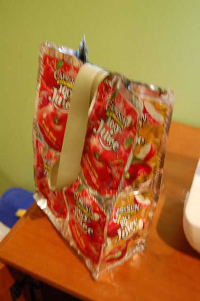 Y ahí lo tienen! Una bolsa almuerzo de jugo reciclado. Es robusto, fiable, fácil de hacer y barato! Sin dejar de mencionar... bastante fresco :)