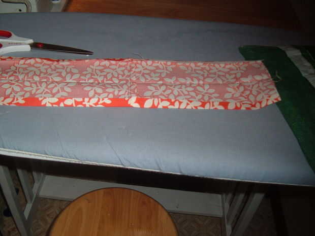 Si tienes dos piezas coser con una costura de 1/2 pulgada. Si sólo tienes uno, olvidese de y un pliegue de 1/2 pulgada en ambos bordes laterales del hierro.
