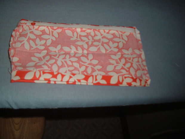 Cosa el restante corta los lados juntos, usando la marca que hiciste como guía. Recortar el borde para que tengas otra costura de media pulgada. Girar la pieza hacia fuera, volver a hierro 1/2 pulgada dobladillos y luego doblar la mitad de la pieza de modo que forma una banda que puede deslizar los bordes de la bolsa en. Deslice los bordes en y asegúrese de que son.