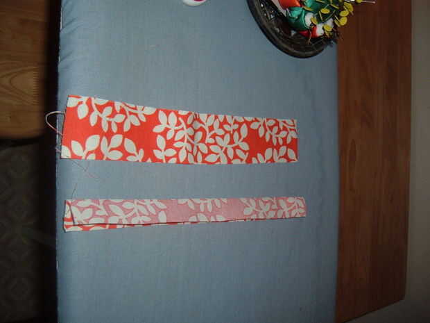 Tomar dos trozos de tela por lo menos 12" de largo y al menos 2" de ancho. Doblarlas en la mitad del camino largo, encarando los derechos en y coserlas juntas por el borde. Vuelva al les con cuidado, usando un palillo u otro instrumento.
