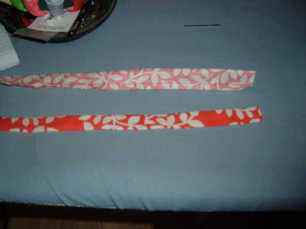 Las manijas de hierro para que sean planos. Mina cosido en el interior: cada extremo 3/4 de pulgada de la costura lateral, costura en las puntadas de revestimiento que va alrededor de la parte inferior. También se podría poner en el exterior, cinta de desecho de uso, utilizan una manija, crees que es bonito y divertido.