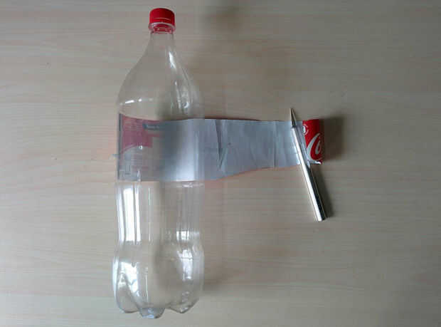 Puede cubrir los bordes con cinta adhesiva que también ayudará a mantener la parte superior caiga abajo en la botella.
