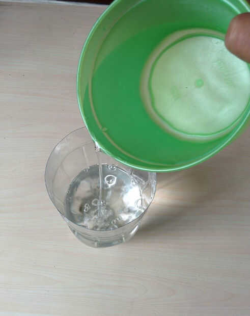 Asegúrese de llenar con suficiente cantidad de la solución de agua para sumergir la mecha en la parte inferior de la botella.