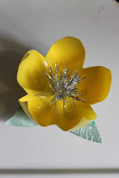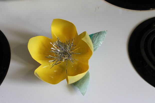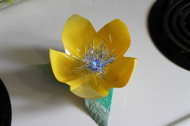 Crea una flor de tapas de botellas y lo convirtió en un juego de jardín decorativo.Paso 1: materialesPrimero junté mis materiales. He utilizado tapones de botellas (yo usé 20 en mina), una tapa de lata, palillos y pegamento (iniciado con pegamento pe