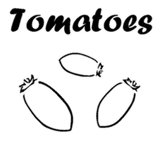 Si no desea que tomates, puede encontrar muchas otras verduras y hortalizas en forma de arte del clip. Sólo tiene que buscar esquemas, plantillas o siluetas de las verduras, los que funcionan mejor para las plantillas. Usé la fuente forte para el texto.