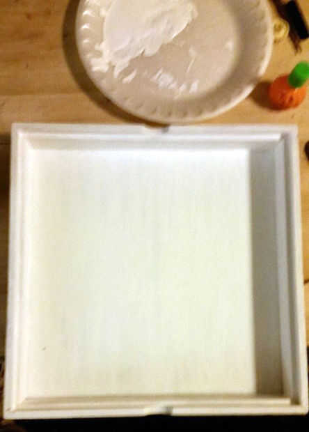 Limpie la base y dejar para secar antes de pintar. Si tienes un kiddo, este es un gran paso para ellos ayudar! Mi hijo menor había pintado a dos capas con pintura arte blanco regular. Asegúrese de permitir que cada capa se seque antes de pasar a la siguiente.