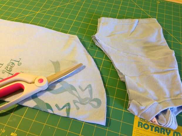 Nota: planeo usando el interior de la camisa como el exterior de la bolsa para que no se muestran las palabras, así que mis instrucciones reflejan esa elección. Si desea que las palabras para mostrar (aunque sean difíciles de leer) a revertir mis instrucciones.