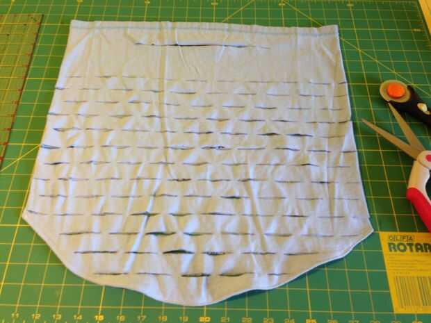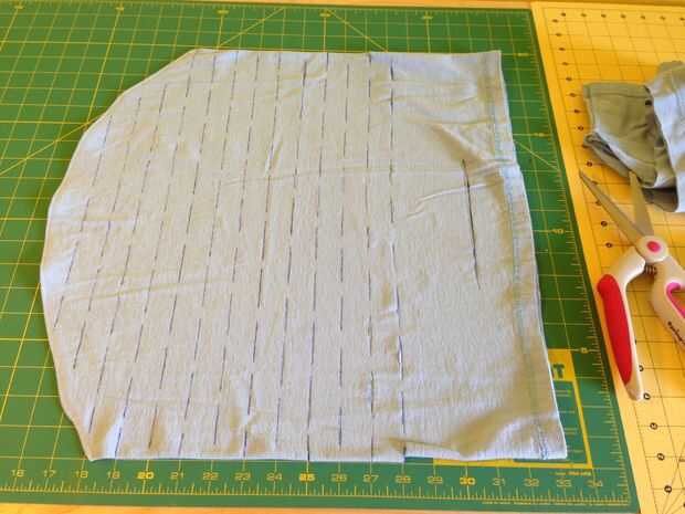 1. usted puede ya sea medida a sus cortes de inicio sólo haciendo ranuras en la camisa, es un proyecto muy indulgente. Ya que quise escribir instrucciones, utilicé una regla y básicamente siguió estas pautas: