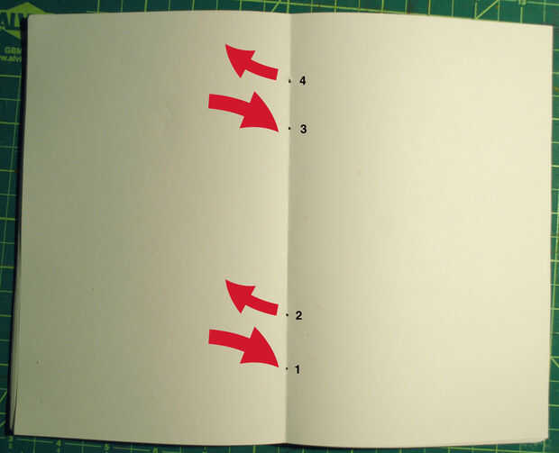 Por último, levante la aguja a través del número de agujero cuatro. Asegúrese de que cada puntada se tiró firmemente! Haga un nudo grande en el hilo que pone apretada contra el orificio de cuatro.