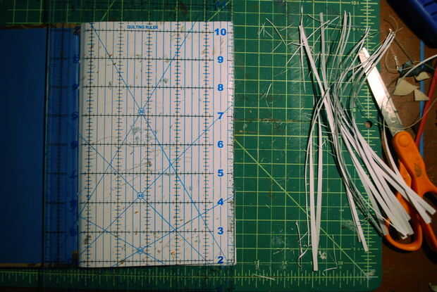Usando su marca de lápiz como guía, recortar las páginas utilizando una regla y una cuchilla giratoria.