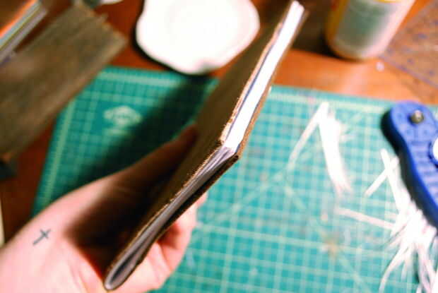 Doblar la tapa en sí mismo para que las páginas son todo por su solitario.