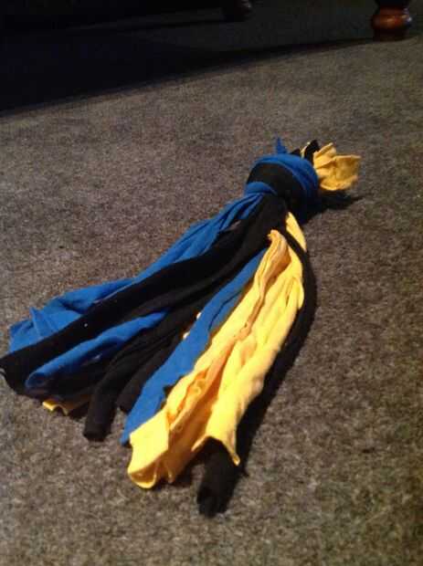 La trenza hasta el final de la borla de tela. La mayoría de esto no quedarse trenzada, pero facilita el segundo nudo.