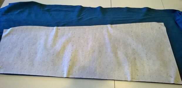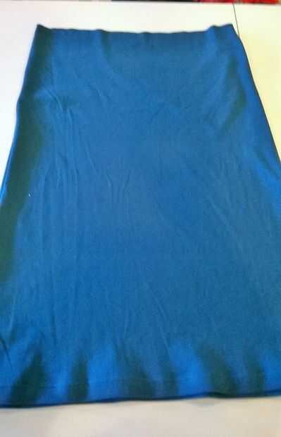 Colocar el patrón en la tela de la falda y corte. Usé un tramo en una turquesa profunda para mi vestido de tirantes de punto.