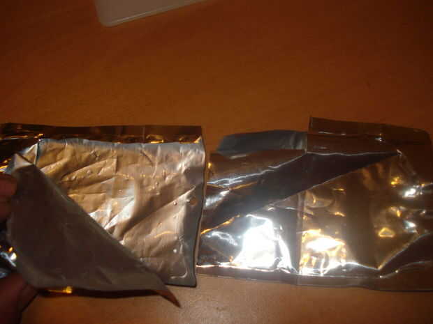 La bolsa de la derecha puede modificarse para que una tarjeta de crédito se pueden deslizar en él también. (solo corte una sección de media pulgada de la aleta que sobresale debajo de la bolsa izquierda.)