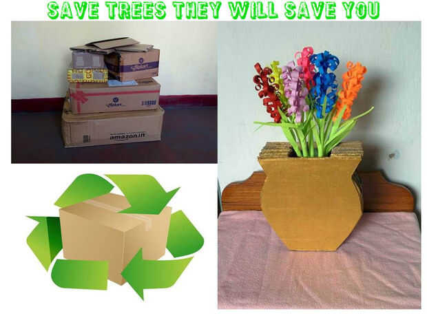 Me encanta ir de compras. En cada compra de una tienda en línea, obtengo de cartón. Yo nunca tirarla. Pero después de algunas veces un montones de cajas de cartón se sienta dentro de mi casa. Se ve bastante feo. Quería reducir este montón de cajas. Así que la mejor opción viene a la mente es hacer algo con este cartón. Hacer este florero de cartón a reciclar el cartón como para hacer mi habitación aseada y limpia.