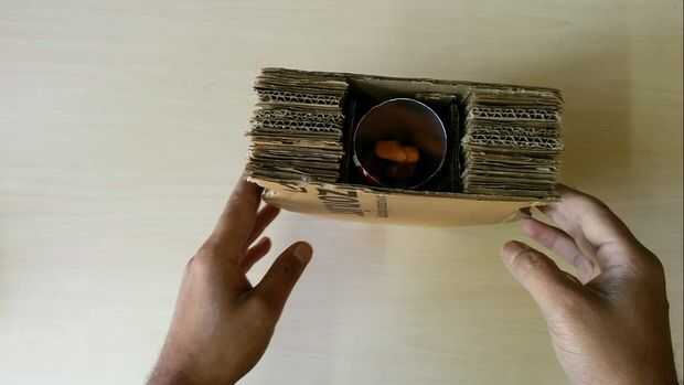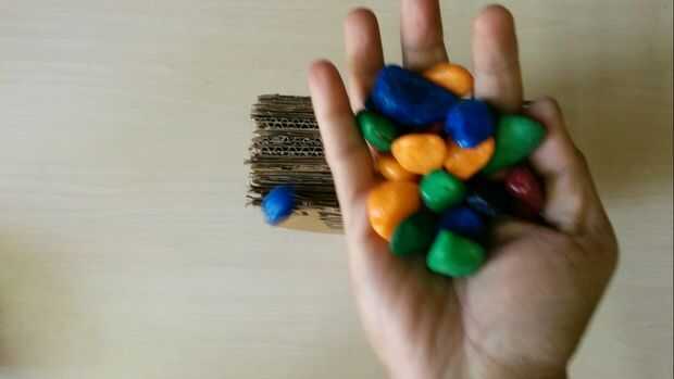 Caída de algunas piedras dentro de la lata. No es obligatorio. Sólo se utiliza para hacer el florero más pesado, por lo que puede sentar con firmeza.