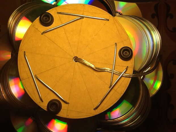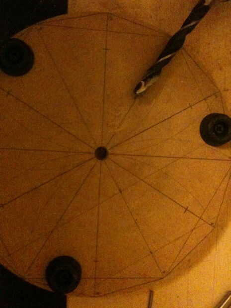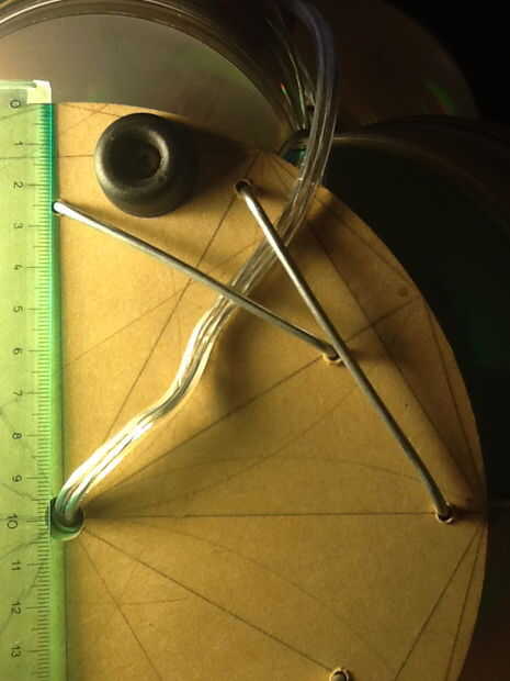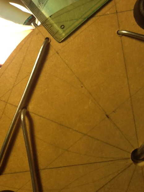 Trazar con el lápiz los puntos para insertar el portalámparas, el alambre del hierro y los pies de goma como se muestra en la imagen (foto de la parte inferior con las medidas)