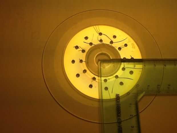 dividir un círculo (por ejemplo dos discos superpuestos) en 12 sectores