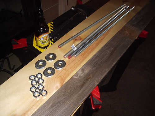 Usted podría utilizar el estándar de bloque de carnicero estándar de usar pegamento, pero optan por utilizar los pernos en su lugar...