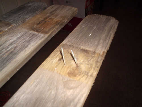 Usted tendrá que quitar los tornillos o clavos de la madera.  Los clavos o tornillos más que probable que están oxidados, por favor tenga cuidado.