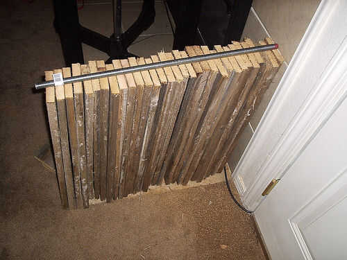 Corte sus tablones en ish secciones de 24", digo ish, porque estaba usando una sierra de calar y mis cortes nunca fueron exáctamente 24".  Además de la apariencia irregular añade carácter, =).  I cortar un tablón y había utilizado como una plantilla.