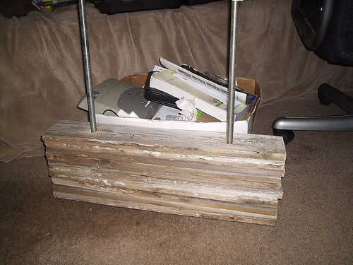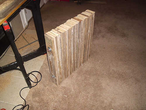 Usted notará que después de poner las tablas en el, será más alto que los Pase todos. Se necesita comprimir o empujar los tablones hasta llegar las arandelas y tuercas en. Que tenga que aflojar las tuercas en el otro lado para dar espacio suficiente para el otro lado.