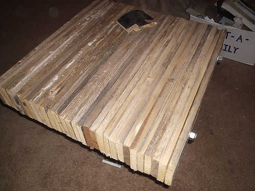 así que tal vez esto no es un carnicero bloque cola-para arriba en el sentido tradicional, pero es un pariente muy cercano con la construcción similar, diseño y aspecto. Vea cómo Scott ha reunido butcher-block a ser usado para hacer asientos de tabur