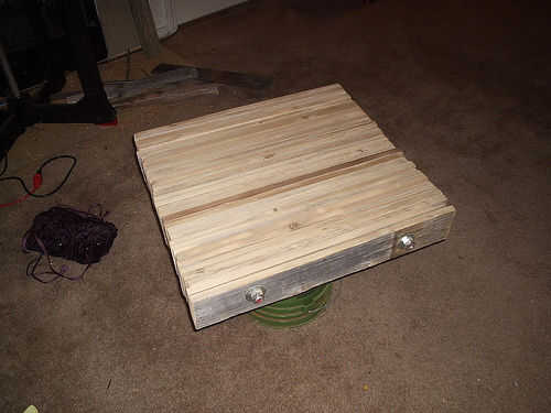 compré una sierra de mesa pequeña de 10" de skilsaw y realmente me gusta, pero la tabla sí mismo era demasiado pequeña para lo que quería usarlo para, así que decidí hacer una tabla más grande de madera contrachapada de 3/4 de pulgada.  Los agujeros