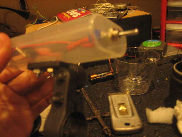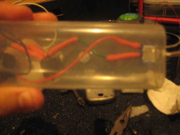 Ahora simplemente coloque el interruptor en su lugar, ejecute los cables a través del orificio en la parte superior (para mí este requiere desoldadura de la luminaria), conecte la batería y probar su nueva Lámpara reciclada.