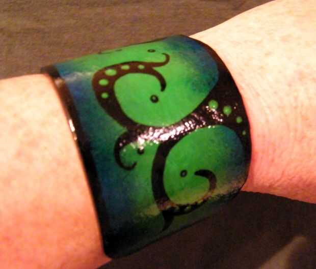 Cinta base pulseras han estado alrededor para las edades pero la mayoría de la gente encuentra que estar muuuucho demasiado grande (fig. 1) jugué con unos cuantos hasta que descubrí una forma fácil para convertirlas en pulseras (fig. 2). Voy a mostrar cómo hacer una base de cinta vacía en un fabuloso original obra de arte usable. Si decides estas sencillas instrucciones son más allá de sus habilidades siempre vemos más acabado impar reciclado arte y curiosas artesanías en http://www.oddartist.com