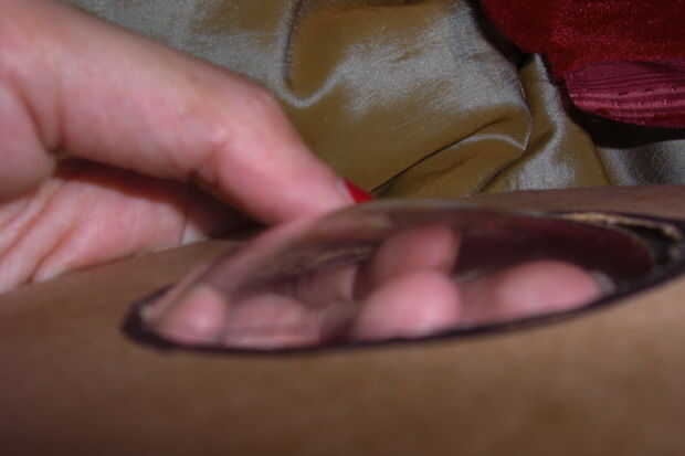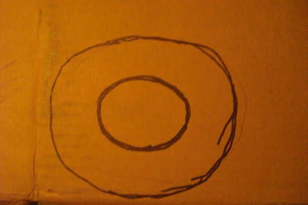 Trace una línea alrededor de una pulgada y media o dos pulgadas fuera del interior oval tratando de seguir la forma oval general lo más fácilmente posible, pero no es crítica, porque siempre se puede recortar más tarde.