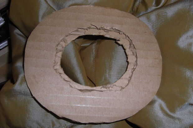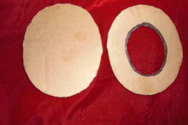 Cortar los círculos interiores y exteriores en la cartulina y recortar el extremo exterior para ser una atractiva forma ovalada y el espesor adecuado de cómo se ve con burla hasta el plástico en su interior.