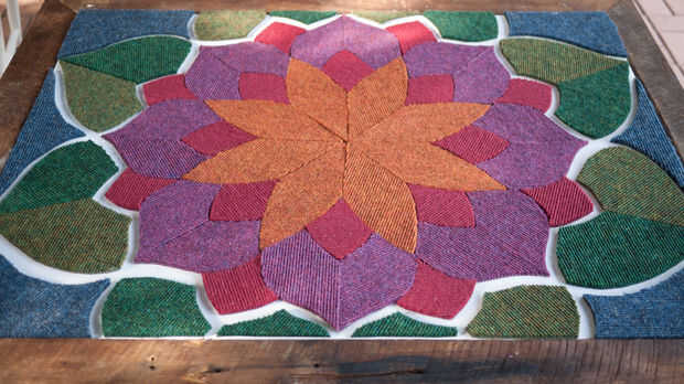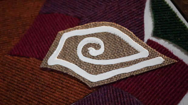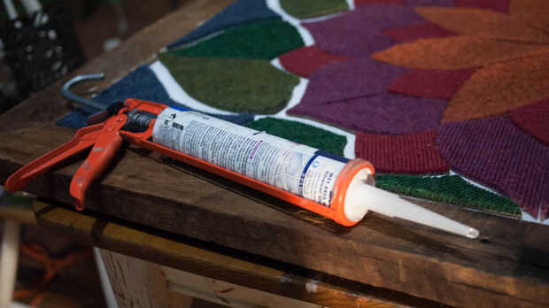 Con silicona en una pistola de taponaje, pegue las partes posterioras de cada forma a partir del centro de su patrón (la flor de la naranja para mí). Esto funciona mejor si corte la punta de su cono de silicona en un ángulo y mantenga el extremo plano hacia abajo mientras pegado.