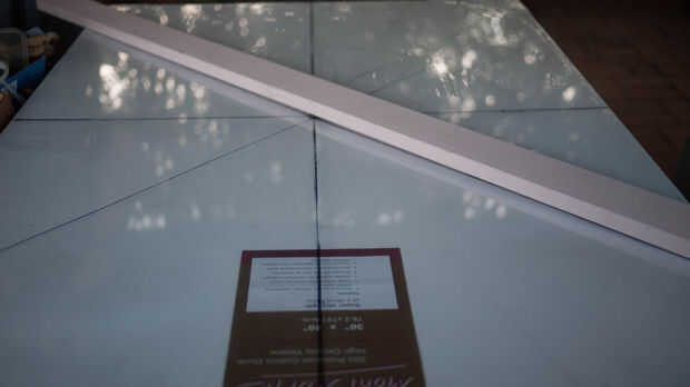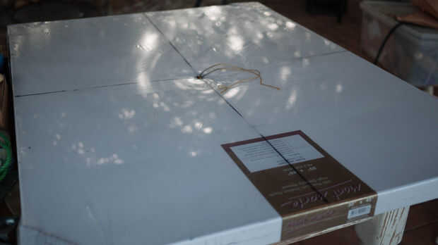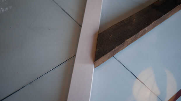 Utilice el borde recto (o en mi caso, sólo una pieza de madera larga recta) y marcador permanente para dibujar líneas rectas a lo largo del centro verticalmente y horizontalmente.