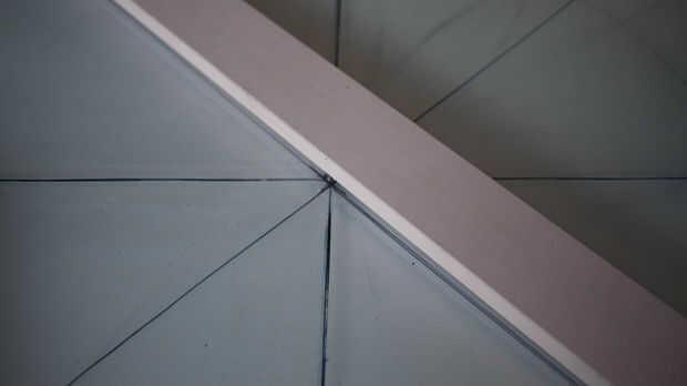 Coloque su inglete (medida del ángulo de 45°) a lo largo de una de sus líneas para que el punto más bajo del ángulo está sentado en el centro de su tela. Coloque el borde recto a lo largo de la Mitra (se muestra en las fotos) y luego tomar la medida del ángulo a. Ahora puede dibujar una línea recta a lo largo de la parte interior del borde recto. Repita el procedimiento en una de las líneas en la dirección opuesta. Esto le dará sus líneas diagonales a través de la lona y ahora tienes todas las líneas de base.