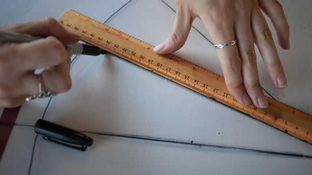 Medir la distancia de las líneas de base desde el centro hasta el borde exterior del círculo y marque el centro de estas líneas. Sólo mide uno y marcados todos a la misma distancia del centro, pero cada uno puede medir Si sientes la necesidad.