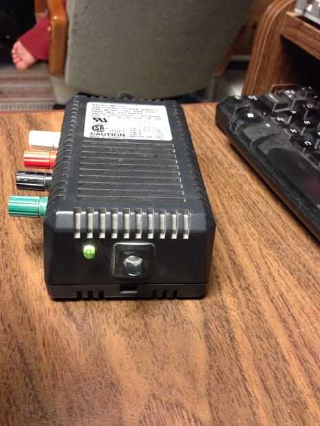 Acababa de usar un ojal de 10mm LED para tapar el orificio del cable original y agregado un par de terminales de conexión a un ladrillo y hay un instante de 12V 3.5A Banco fuente.