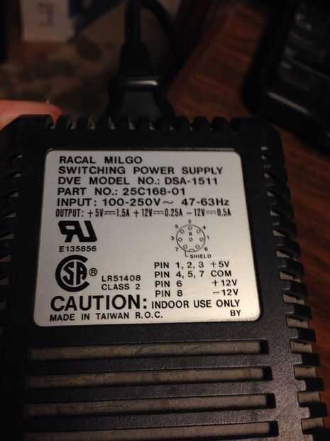 También encontré un multi salida ladrillo de un antiguo módem Racal-Milgo. que proporcionan + 12(White), + 5(Red) y-12V(green) salidas