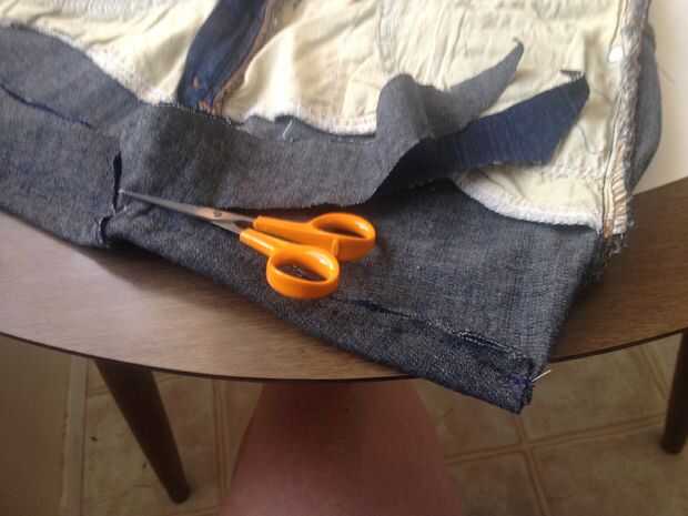 4. recortar la tela sobrante del área de costura, dejando de 1/2" borde libre.