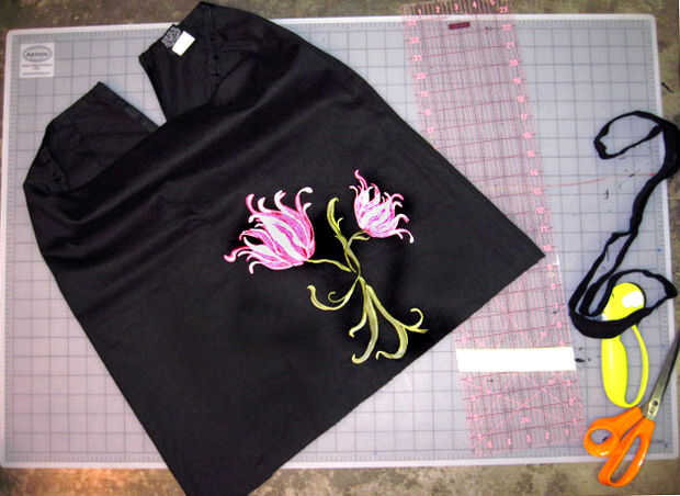 Cortado la parte inferior y superior de la falda usando una regla con marcas de guía y una cuchilla giratoria.